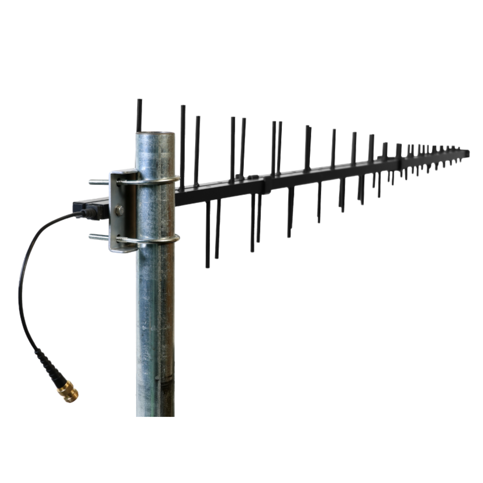 The CEL-FI LPDA-R Antenna offers a powerful 12 to 14 dBi gain (depending on carrier frequency) over 617–4000 MHz and is designed to reduce out-of-band noise, to improve SiNR, and overall signal quality. Mounting is made simple with included U-Bolts. This CEL-FI product also features a 10K ohm resistor that enables the antenna connection to be validated by CEL-FI Network Units equipped with the capability.